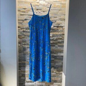 Step out in style with this vibrant blue floral midi dress. Perfect for any occasion, it features delicate spaghetti straps for a chic look.