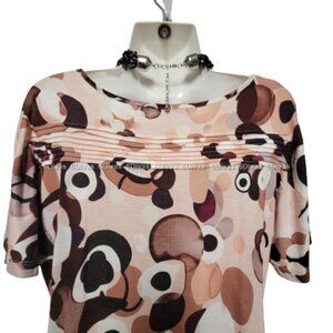 Yest Short Sleeve Lightweight Soft Pink and Brown Casual Tops- Size L, Size XL