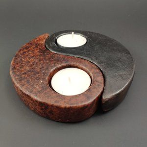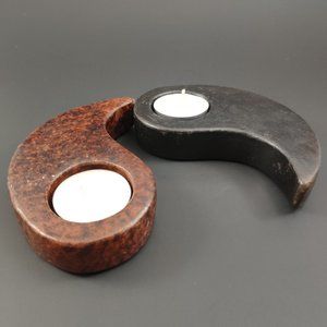 Vintage soapstone tealight holders 5.25 inches in diameter and 1 inch in height, black and speckled rusty brown