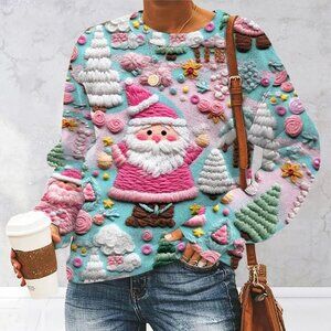 Feature Christmas pattern, santa print, warm thickened material, long sleeve, crewneck, oversized loose fit. Simple and elegant, fashion and trendy, add beauty to your Wardrobe.