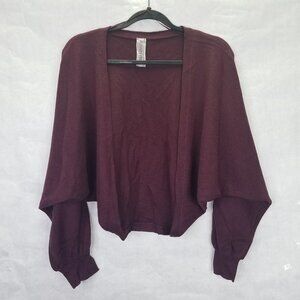 Yoana Baraschi Shrug Women's S Wool Blend Batwing Sleeve Burgundy Long Sleeve