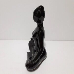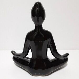 Seated Yoga Pose Female Figurine Meditation Statue Black Ceramic Sculpture.