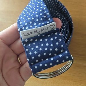 Yoga strap - blue & white polka dot fabric yoga strap with D-ring - Love My Mat