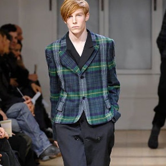 Yohji Yamamoto Pour Homme Fall 2008 Runway Cropped Tartan Plaid Wool Jacket