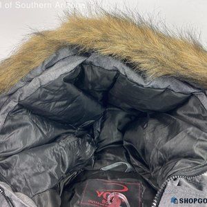 Yoki Bomber Jacket Boys Size L 14-16 Gray Full Zip Faux Fur Trim Hooded Polyeste