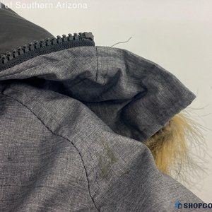 Yoki Bomber Jacket Boys Size L 14-16 Gray Full Zip Faux Fur Trim Hooded Polyester.