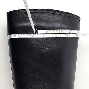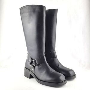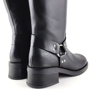 Yokono Women's Tall Black Leather Riding Biker Boots Strap Buckle Block Heel 39