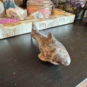Unique stone shark figurine with a natural pattern. Perfect for decor or collection.