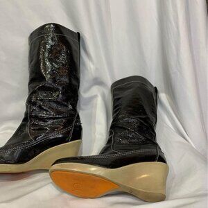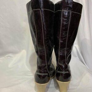 YOU by CROCS rain boots. Brown with wedge heel. Size 6.5. (37) Leather upper- man made sole. New condition.