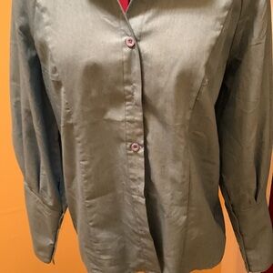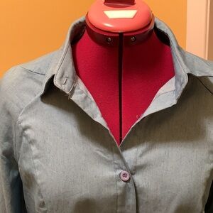 Young 17 Shirt Collar Long Sleeve Shift Faux Denim Blouse with French cuffs 🔴