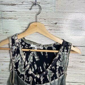 This stylish tank top from Young Fabulous & Broke features a striking black and gray tie-dye pattern. The sleeveless design and soft, flowing fabric make it perfect for casual wear. Its modern artistic look is both comfortable and fashionable.