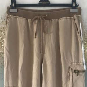 Size: Medium. Super soft! 100% tencel contrast. 95% cotton; 5% spandex. Outseam: 38.5 inches. Inseam: 27 inches. Waist: 31 inches. Hips: 36 inches. Rise: 11.5 inches. Zip cargo pockets on both legs. Drawstring waist. Retails for $225 CAD (plus tax). Excellent condition! New with tags.
