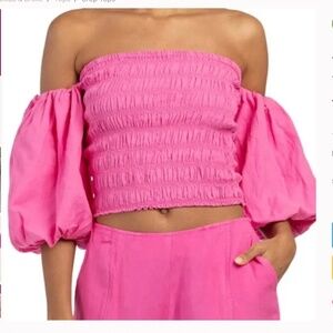 Young Fabulous & Broke Yacht Top Off Shoulder in Tropical Pink linen Size XS