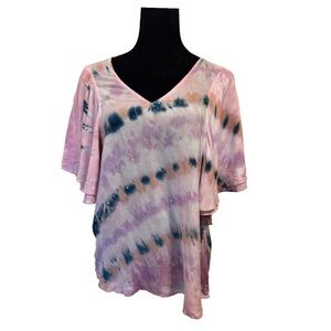 Keywords: Young Fabulous and Broke top, boho blouse, pink tie-dye shirt, butterfly sleeve pullover, casual chic top