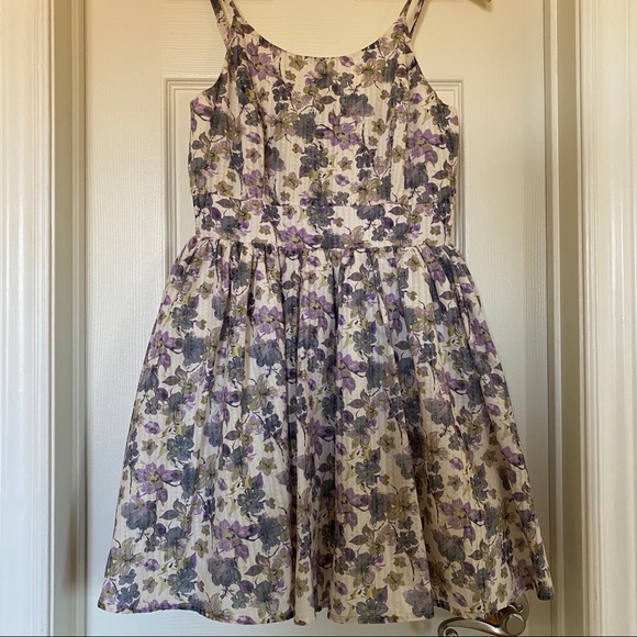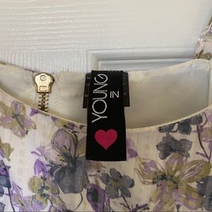 Young In White Dress with Purple and Blue Floral Design • good condition