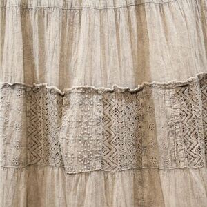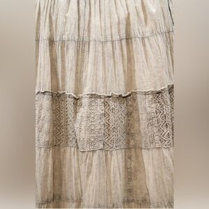 Elevate your wardrobe with the 7-tier Lace Crinkle Skirt from Young Threads. This bohemian-inspired skirt showcases delightful prints and comes in soothing hues like ivory/cream, navy/blue, and sage. Designed for everyday elegance, this skirt is a versatile choice for various occasions, whether it's a serene Church service, a whimsical wedding, or a romantic date night. Available in regular sizes, this skirt effortlessly combines style and comfort. Embrace your feminine flair with this charming addition to your collection!