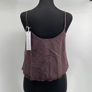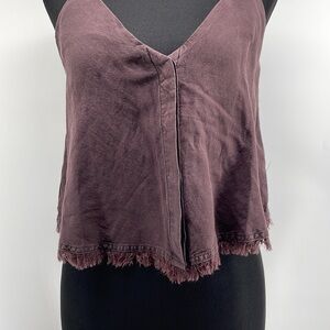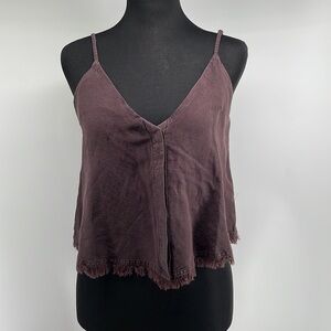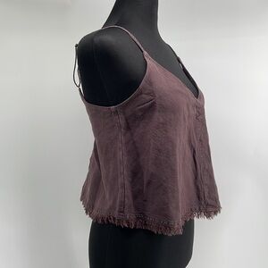 Young fabulous & broke brown tank linen blend raw edge button closure sz xs NWT