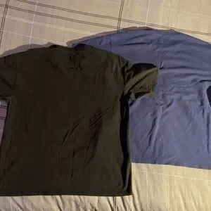 In great condition. Shirts are very comfortable and stretchy. Fit tighter on the arms and more relaxed on the body.