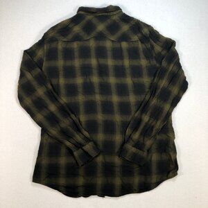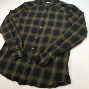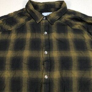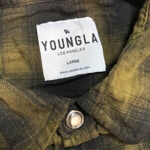 YoungLA Shirt Mens L Green Plaid Pearl Snap Lightweight Viscose Rayon Travel 448
