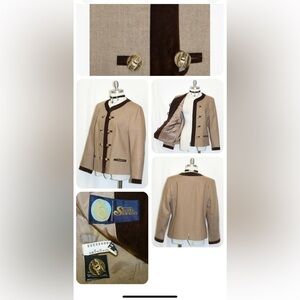 Your Sixth Sense Wool and Velvet trim Short Riding Jacket artifical wood buttons - Vintage
