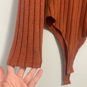 Your Style Rust Orange Ribbed Long Sleeves Bodysuit Large