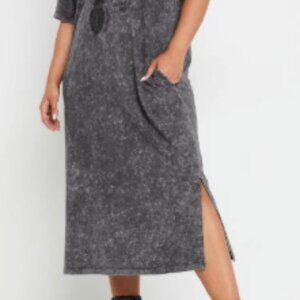 Yours | Plus Size - Acid wash Grey Rose Graphic Print T-Shirt Dress - NWT