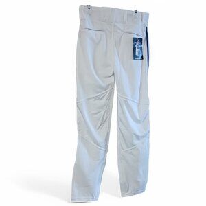 Gear up for the game with these Alleson Athletic Baseball pants! Featuring blue braid piping down the sides for a sleek look, back pockets, and a snap & zip front with belt loops. Mesh knees provide flexibility for maximum performance. Size M , new with tags. Two pairs available.