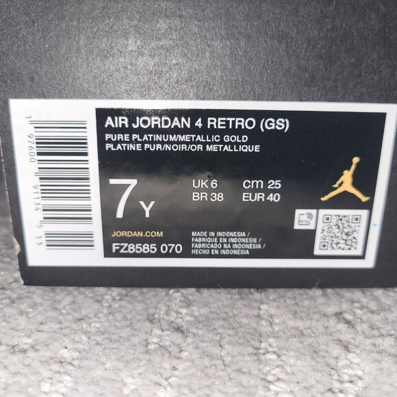 Youth Size 7Y / 8.5W Jordan 4 Retro Platinum Gold (GS) FZ8585-070 Authentic New