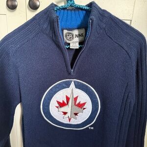 Excellent like new condition pre-owned Officially licensed Winnipeg Jets Sweater. Sz small. Should fit approximately age 9-13