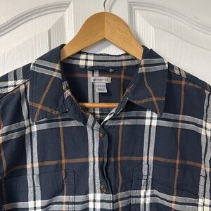 Youth size 14-16 Carhartt blue plaid button down shirt