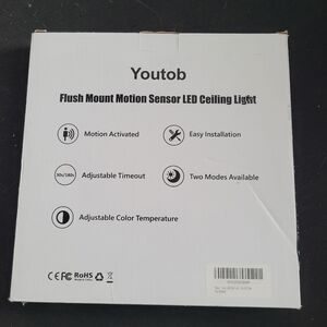 Youtob flush mount motion sensor LED ceiling light. Sleek white design.