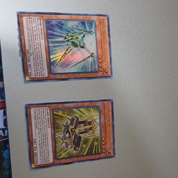 Set of two Yu-Gi-Oh! trading cards. Features vibrant artwork with blue and gold accents.