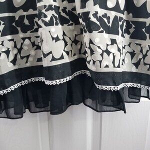 Yumi Handmaid Dress Black/Grey Butterfly Print Layered Skirt Size L but measures like a small.