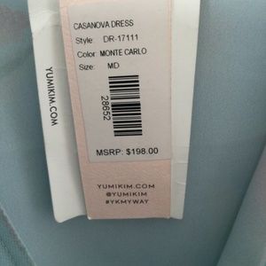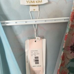 Yumi Kim wrap dress midi length, light blue floral pattern, size medium