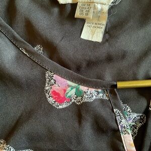 Yumi sz 10 black with floral clinched waist dress with sheer sleeves lightweight
