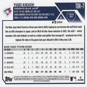 Yusei Kikuchi - 2023 Topps Toronto Blue Jays MLB Series Card - Card Number TOR-7