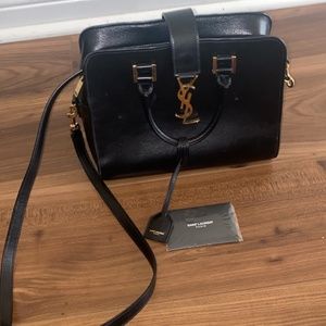 Black handbag with gold hardware in great condition . YSL handbag comes with authentication card and detachable shoulder strap.