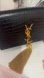 Chic Yves Saint Laurent clutch in black croc pattern. Features elegant gold accent. Perfect for stylish outings.