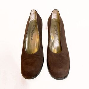 Yves Saint Laurent Brown Suede Block Heel Pumps