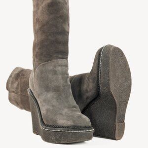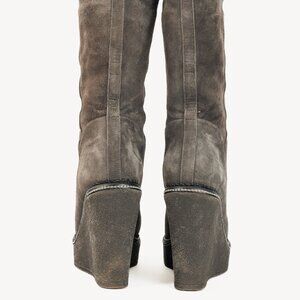 Yves Saint Laurent Grey Suede Shearling Platform Wedge Boot