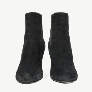 Made in Italy, these booties from Yves Saint Laurent are crafted in a Nero black suede, and feature covered wedge mid-heels, closed almond toes, elastic gussets, and leather lining and soles.