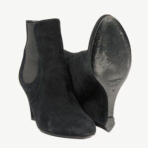 Yves Saint Laurent Nero Suede Chelsea Wedge Booties