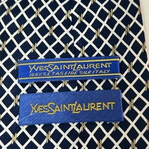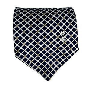 πΌ π Classic luxury silk necktie by Yves Saint Laurent, window pane print on the diagonal with barb wire detail, branded throughout, no issues to note