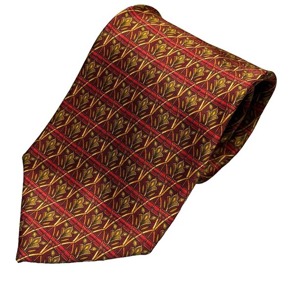 Yves Saint Laurent Tie 100% Silk Satin Made in Italy Geometric Bronze 4"