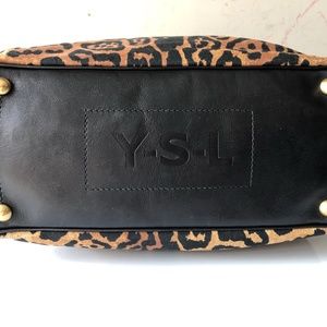 Yves Saint Laurent refined leopard canvas travel/shoppers tote/ bag. Black leather exterior/interior trim, handle and identification tag-embellished with YSL. Refined tan canvas lining with large zippered pocket and cell phone pocket. Gold magnetic closure. Comes with original dust bag-black satin with YSL logo and white flannel lining. Perfect bag for everyday, shopping or travel. NWOT - NEVER USED Reasonable offers considered