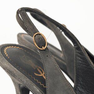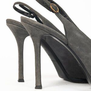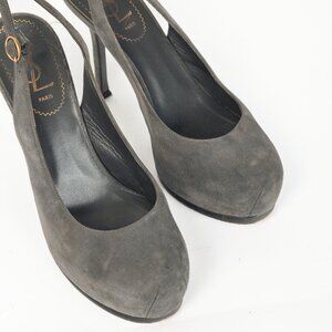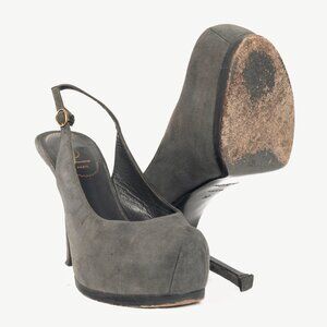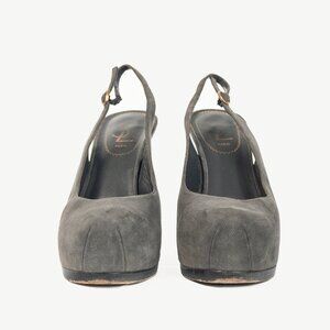 Yves Saint Laurent Tribtoo Grey Suede Platform Slingback Pumps