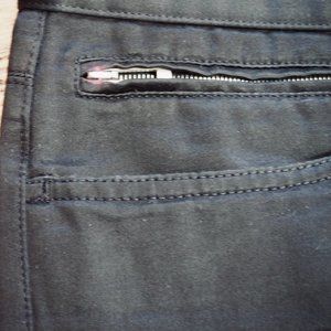 3 front pockets, including a zippered pocket, and 2 back pockets