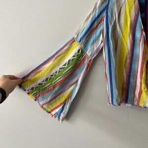 Z & L Striped Cropped Top Long Sleeve Tie Front Yellow Blue Small