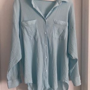 Z Supply Lalo Gauze Button Up Top, Turquoise Blue, size M/L