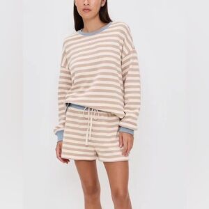 New with tags. Sweater is size xs, but fits fairly oversized so I’d say it fits like a small. Shorts are size small.